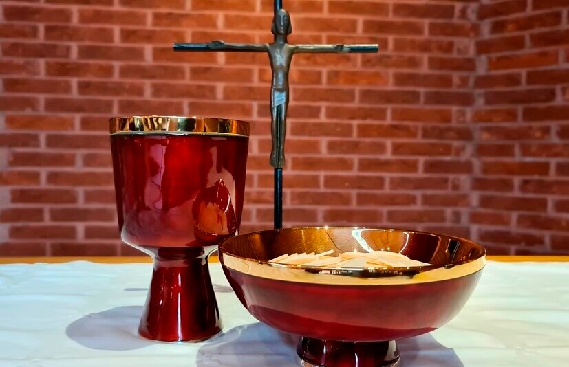 Beim letzten Abendmahl hat Jesus das Brot gesegnet, gebrochen und seinen Jüngern mit den Worten «dies ist mein Leib» gegeben. Ebenso hat er es mit dem Wein gemacht und dazu gesagt «dies ist mein Blut».