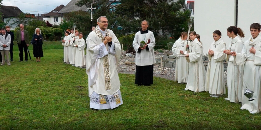 Am Muttertagssonntag hat Pfarrer Roland Häfliger das Stück Ruderalfläche mit der Einsegnung zum wunderbaren Gedeihen der Natur übergeben.