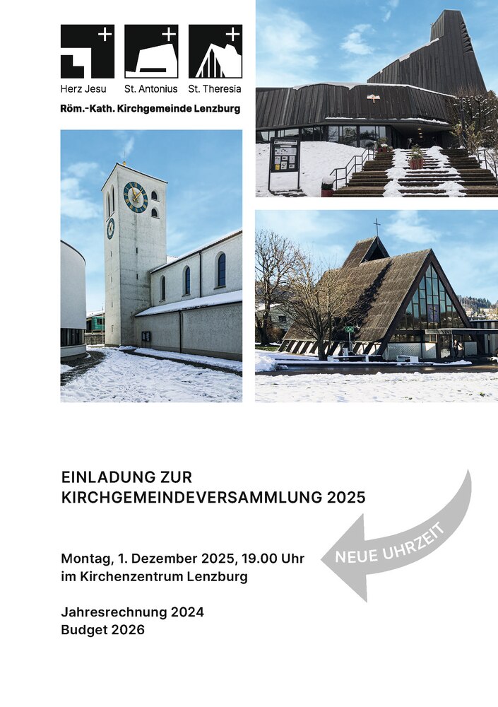 Die Akten und Belege der Jahresrechnung 2024 konnten ab dem 18. November 2025 im Pastoralraum-Sekretariat Lenzburg eingesehen werden (Bürozeiten Di, Mi und Do, 9 bis 11 Uhr).