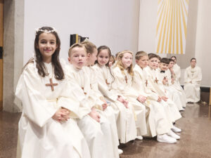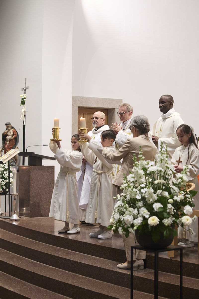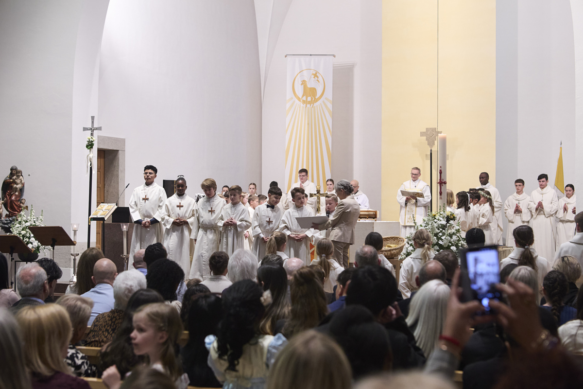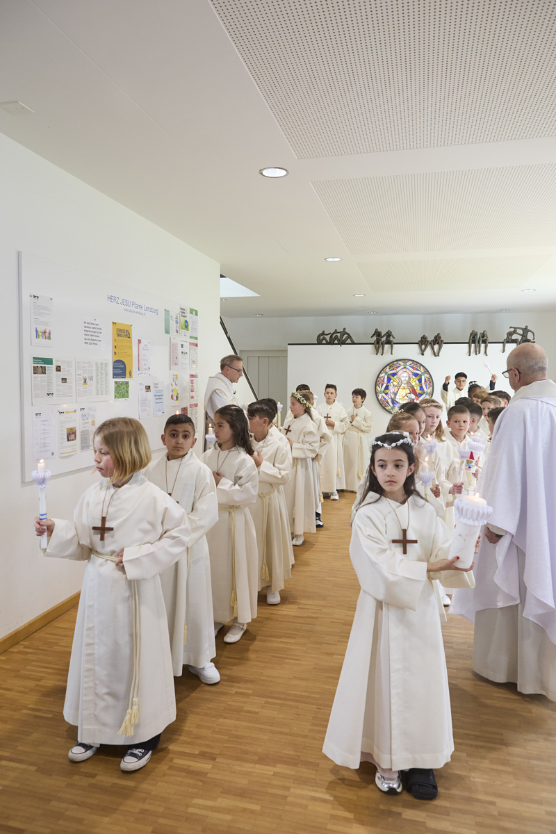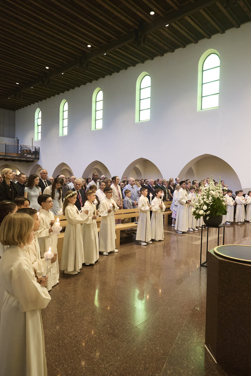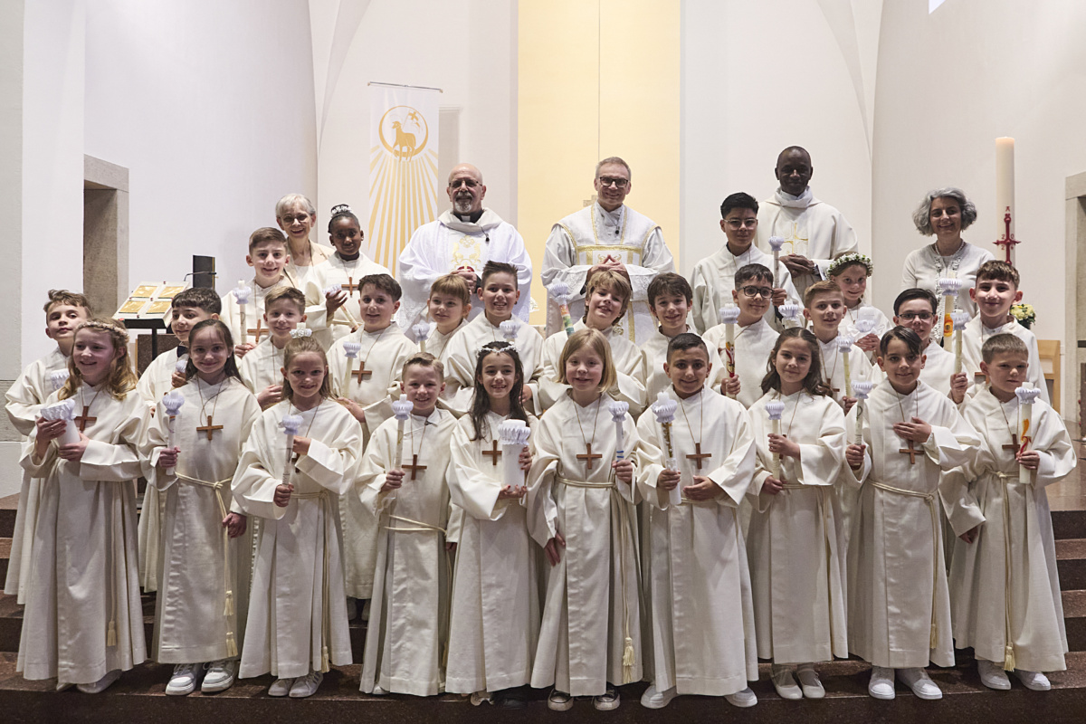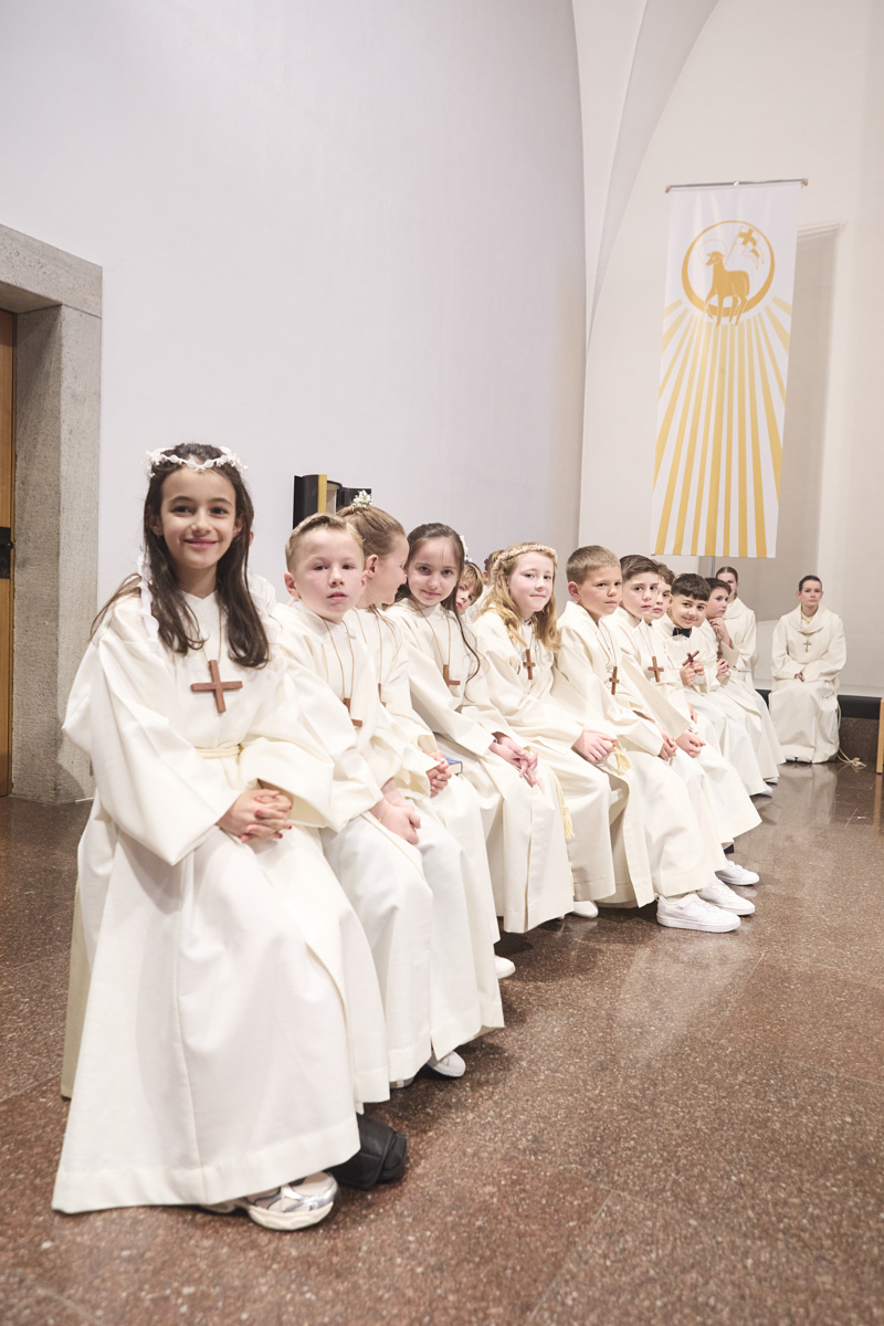 Am Samstag, 11. April, durften 26 Erstkommunikantinnen und Erstkommunikanten zum ersten Mal Jesus in der Eucharistie empfangen. Mit grosser Freude, Respekt und Ehrfurcht sind sie Jesus begegnet.