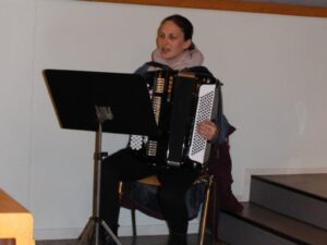 Die Kinder und Erwachsenen stimmten sich gemeinsam mit Liedern auf die besinnliche Zeit ein. Die Lichter strahlten nicht nur in den Fenstern, sondern auch in den Gesichtern der Teilnehmenden. Corina Furrer begleitete die Lieder musikalisch am Akkordeon und Lydia Furrer knipste die Fotos.