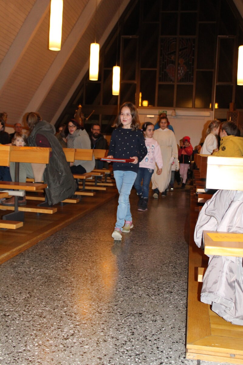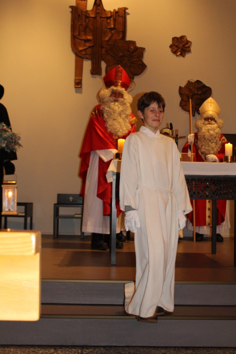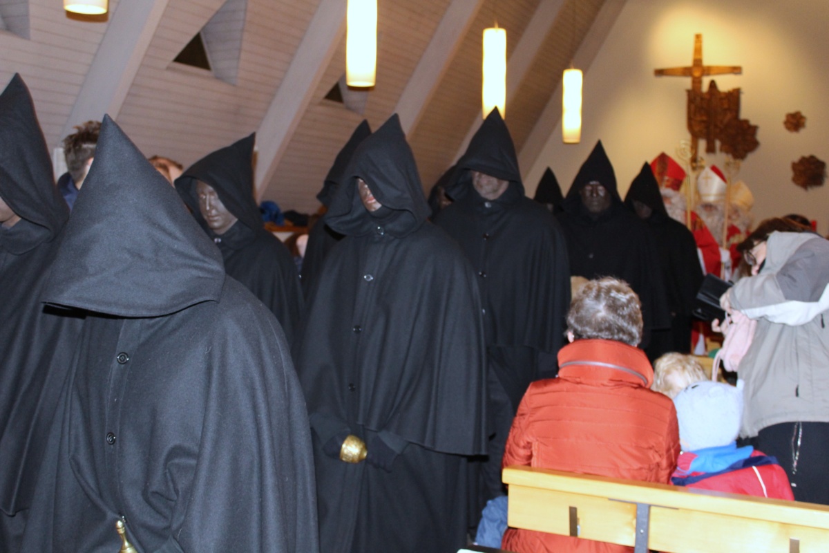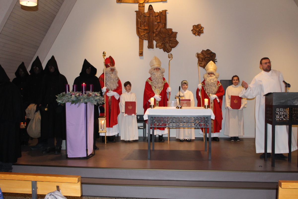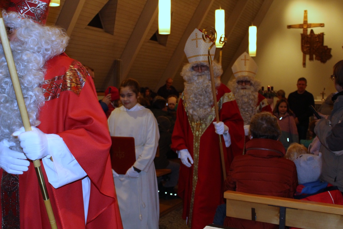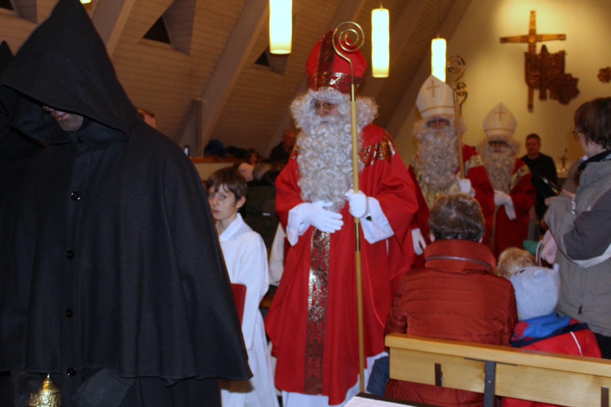 Die Feier war sehr spielerisch gestaltet. Von den drei Nikoläusen hatte jeder etwas nicht dabei, da er es im Vorfeld scheinbar nicht mehr gefunden hatte. Der eine Nikolaus hatte keine Mitra, der andere keinen Stab und der dritte kein Buch. So durften die Kinder raten, welcher Samichlaus welches wichtige Utensil nicht dabei hatte, und gingen es jeweils mit dem zuständigen Diener in der Kirche suchen. Für die Kinder war das ein herrliches Spiel, an dem sie sich gerne beteiligten.