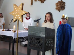 Am Sonntag fand der Sternsinger-Gottesdienst in der Kirche St. Theresia vom Kinde Jesu statt. Die Sternsinger konnten unterwegs und am Gottesdienst einen beachtlichen Betrag von über 1’000 Franken zugunsten «Missio – Aktion Sternsingen» sammeln. Hier ein paar Eindrücke von diesem traditionellen Anlass.