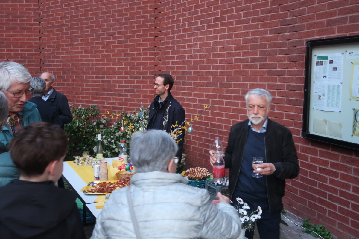 Vom Tod ins Leben – das feiern wir in eindrücklicher Weise jedes Osterfest von Neuem. Anschliessend an die Osternachtfeier vom 4. April, lud der Pfarreirat zum Apéro mit Eiertütschen rund um das Osterfeuer ein.