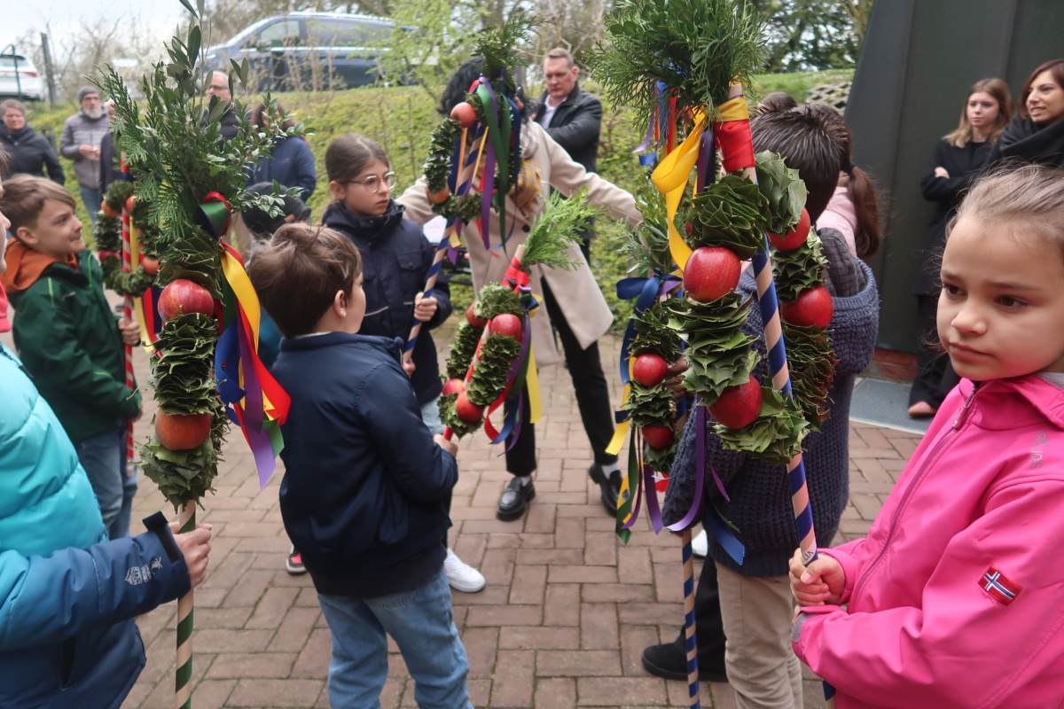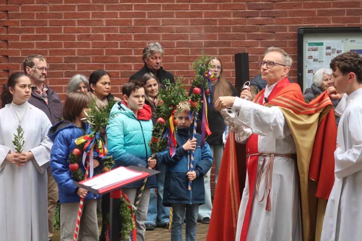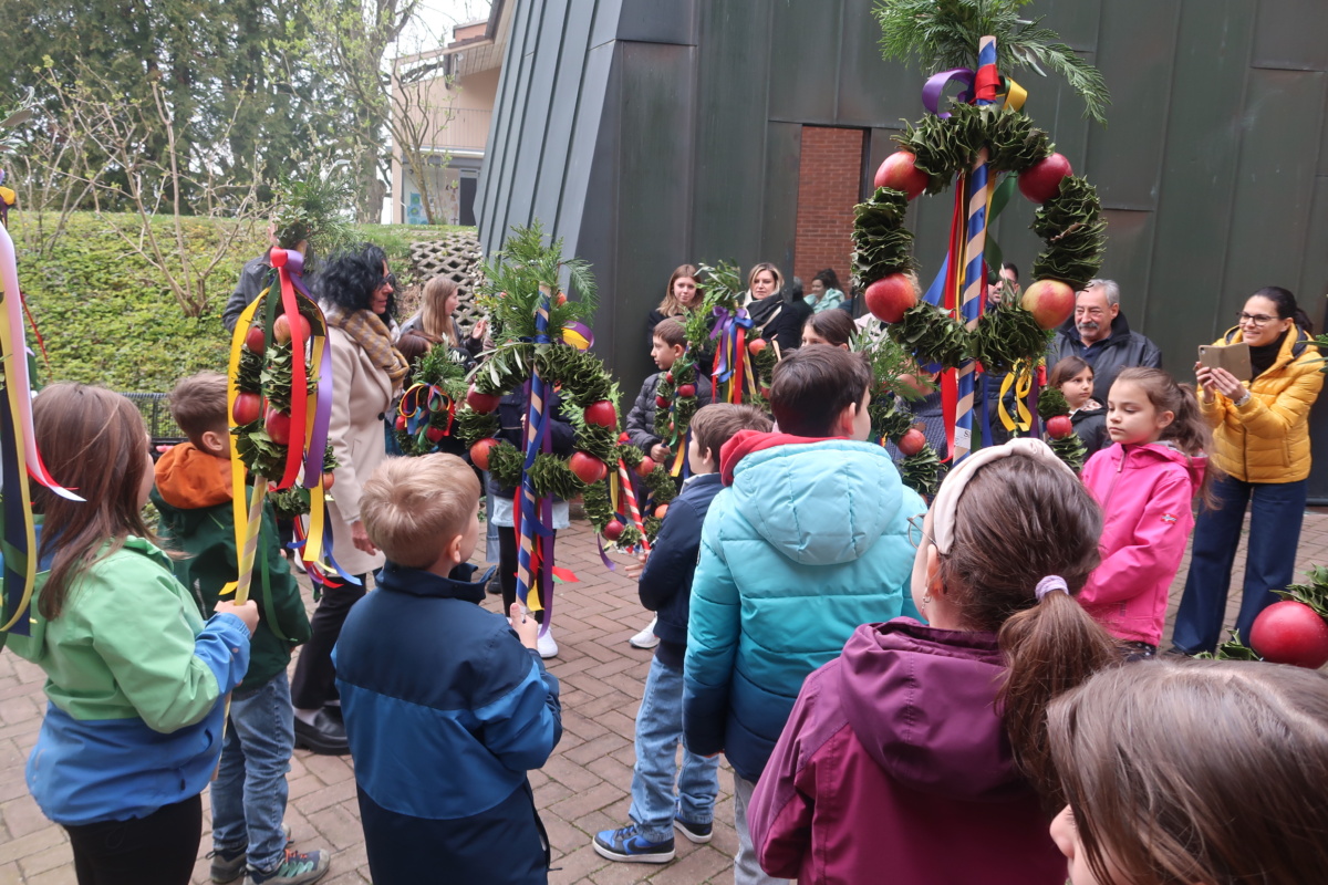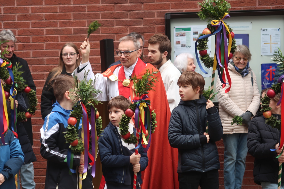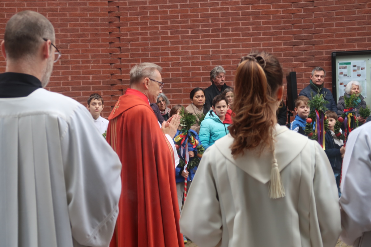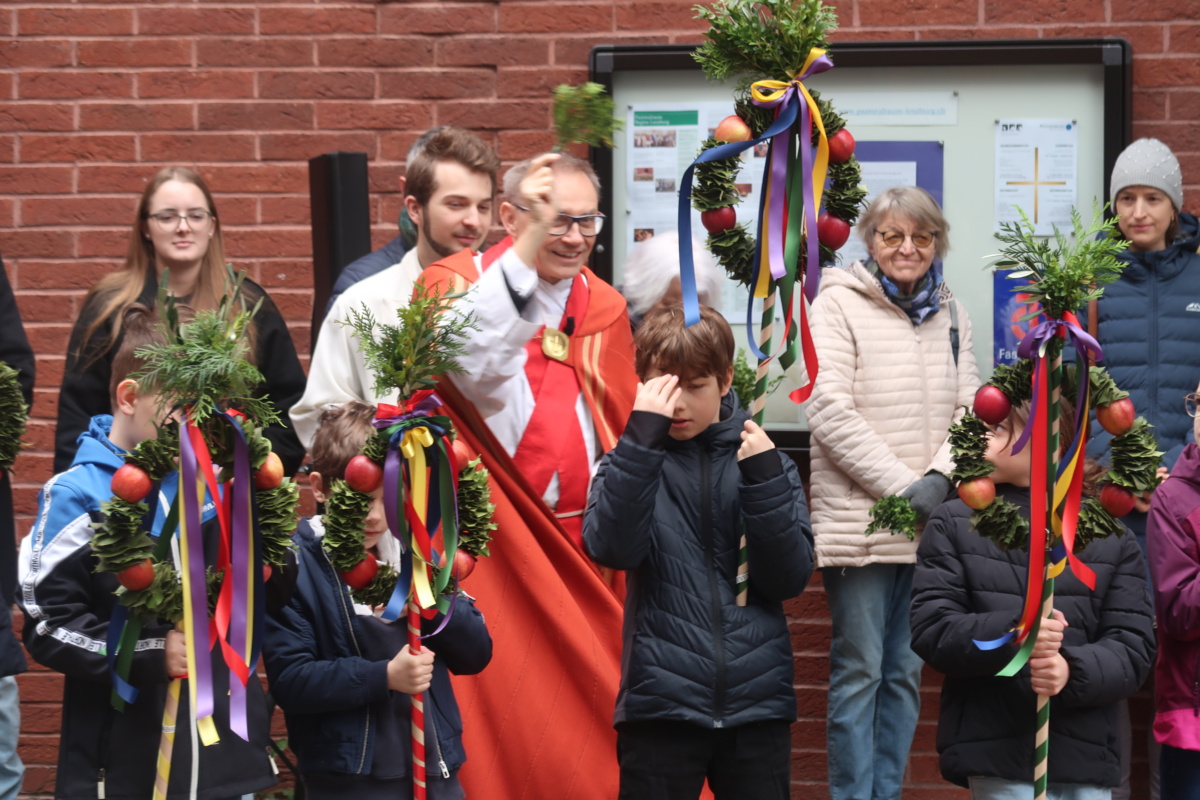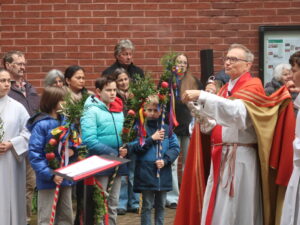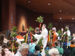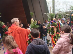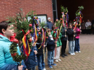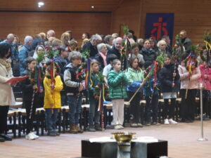 Die Erstkommunikantinnen und Erstkommunikanten haben am Samstag vor Palmsonntag Palmen vorbereitet. Diese wurden am Palmsonntag, 29. März, vor der Antoniuskirche gesegnet, danach zogen alle feierlich in die Kirche ein. Der Kirchenchor Staufen hat die Feier musikalisch umrahmt. Ein schöner Gottesdienst, der uns alle auf die Heilige Woche einstimmte.