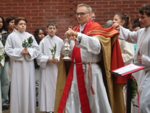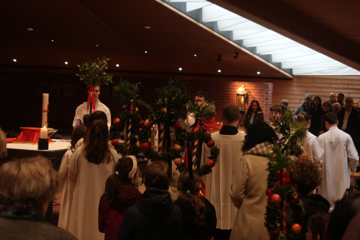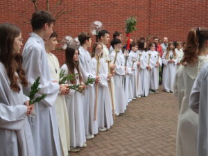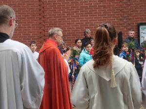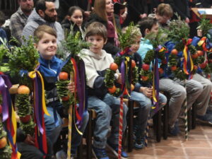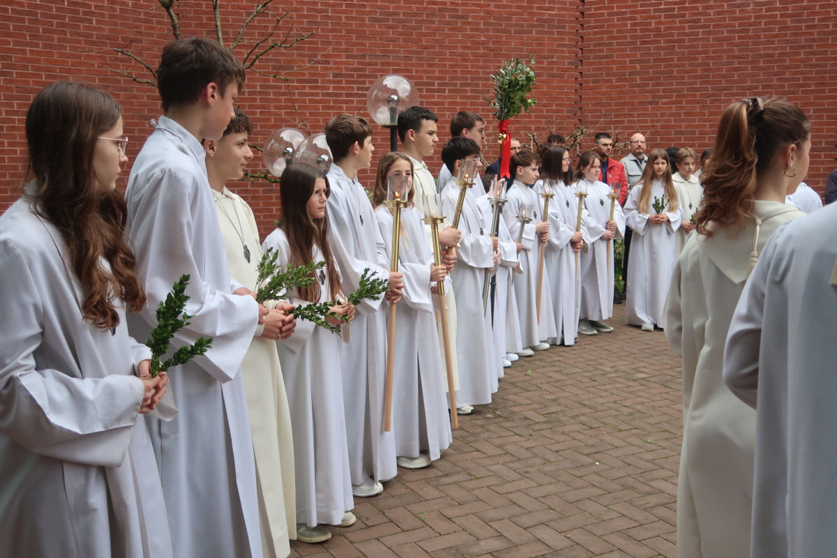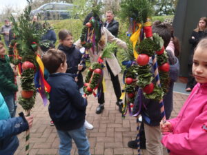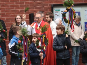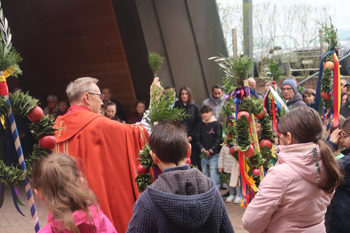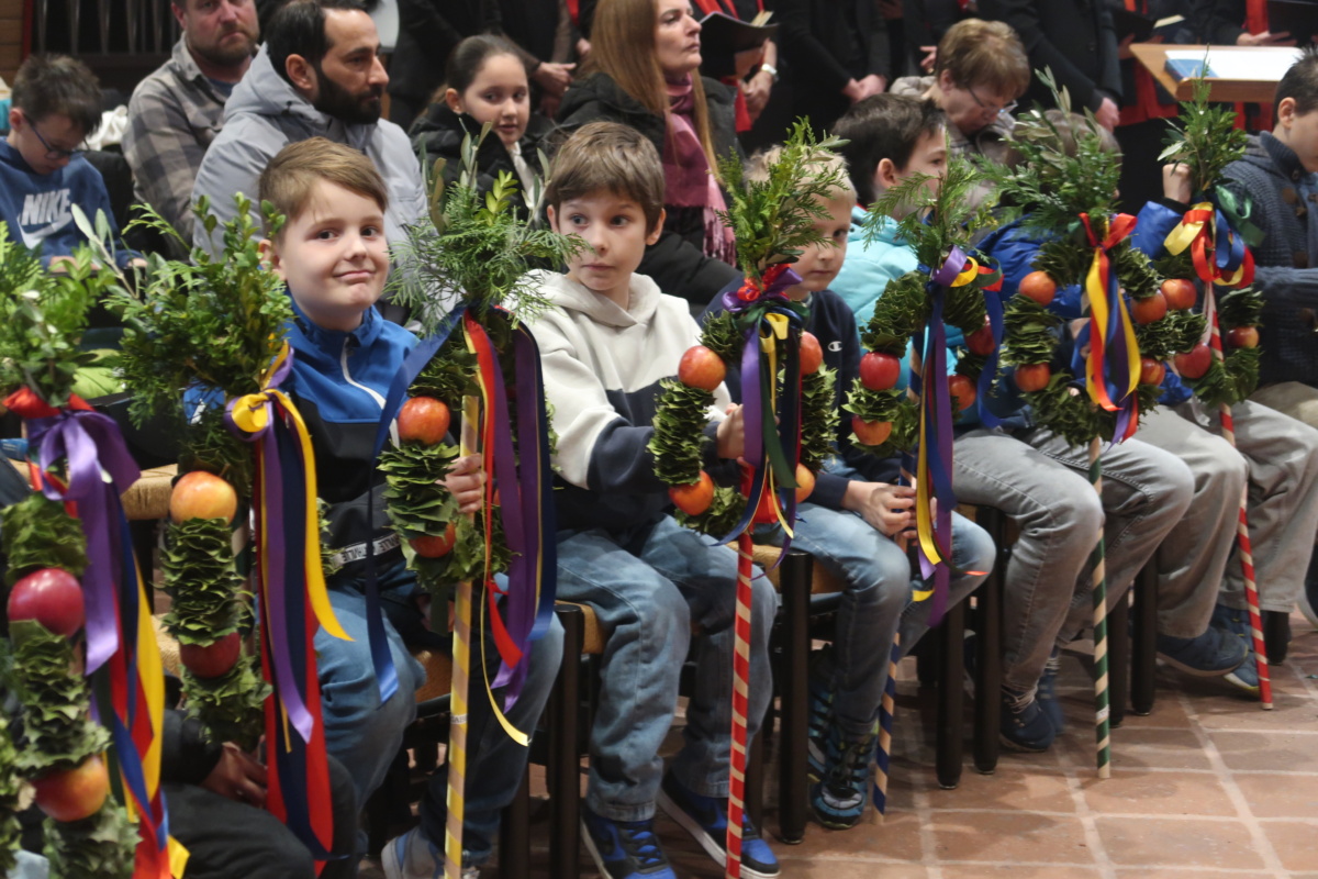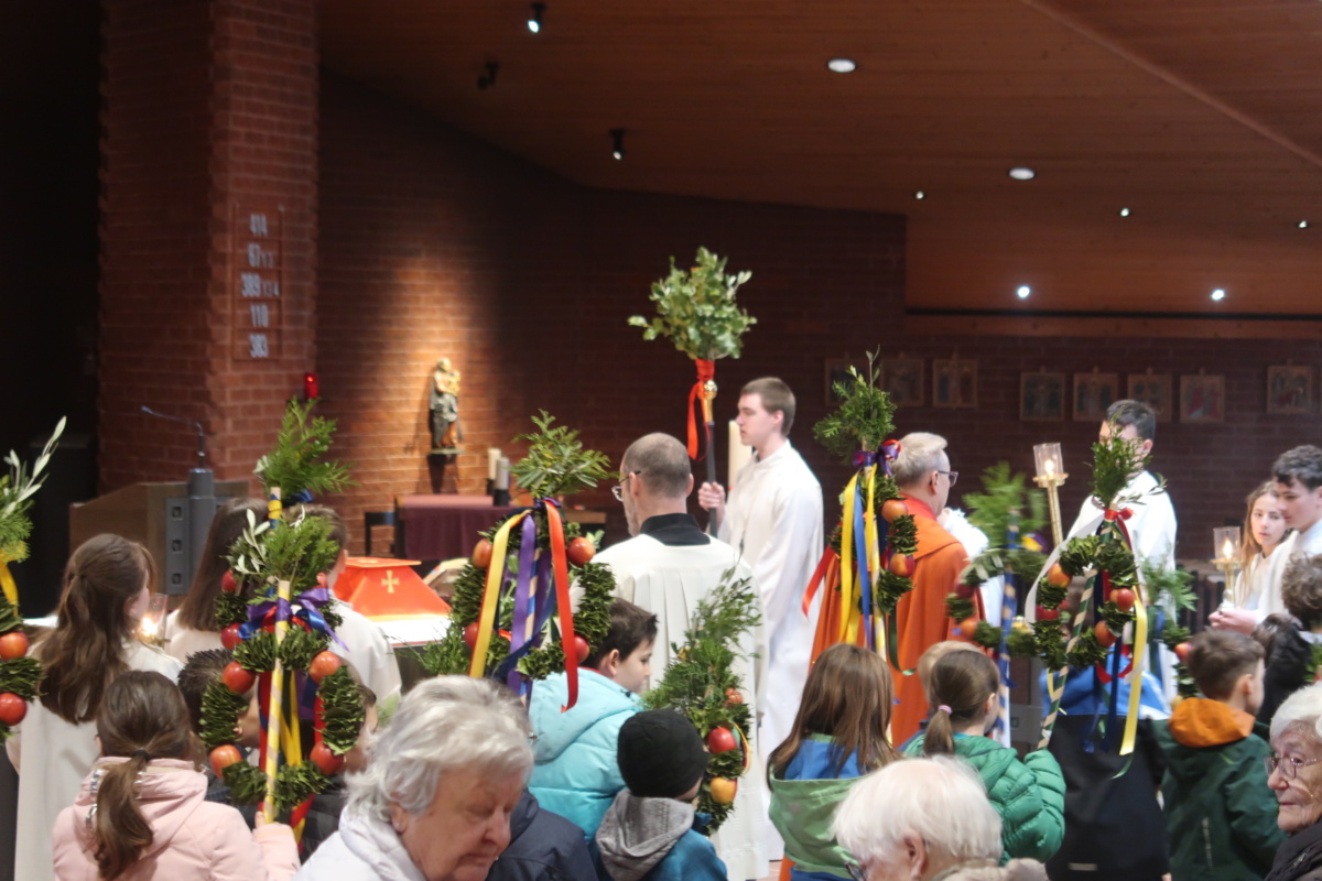Die Erstkommunikantinnen und Erstkommunikanten haben am Samstag vor Palmsonntag Palmen vorbereitet. Diese wurden am Palmsonntag, 29. März, vor der Antoniuskirche gesegnet, danach zogen alle feierlich in die Kirche ein. Der Kirchenchor Staufen hat die Feier musikalisch umrahmt. Ein schöner Gottesdienst, der uns alle auf die Heilige Woche einstimmte.
